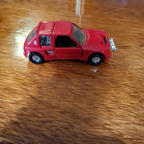 Porsche 944 Turbo legetøjsbil i rød farve. Modellen har detaljer som turbo-mærkater og sort spoiler. Egnet som samlerobjekt eller legetøj. Pris er fast