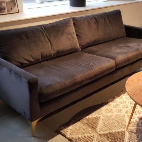 Sort velour sofa med chaiselong