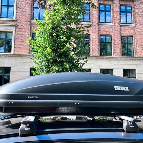 Stor rummelig tagboks fra Thule, købt gennem FDM for ca. 5 år siden. Brugt 5 gange, derfor også i rigtig flot stand. Der medfølger 4 PowerClick beslag der gør boksen super nem at installere, og der medfølger naturligvis nøgle til låsen. Tagboksen kan åbnes fra begge sider.