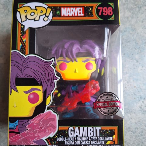 Marvel X-Men Blacklight Gambit & Deadpool Funko Pops 798 og 801. I perfekt stand og har aldrig været ude af kassen. Sælges kun samlet!