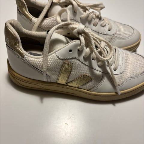 Veja sneakers i størrelse 37. Skoene er hvide med detaljer i en bronze nuance.
