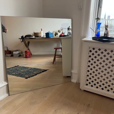 Aflangt spejl uden ramme. God stand. 30x120 cm
