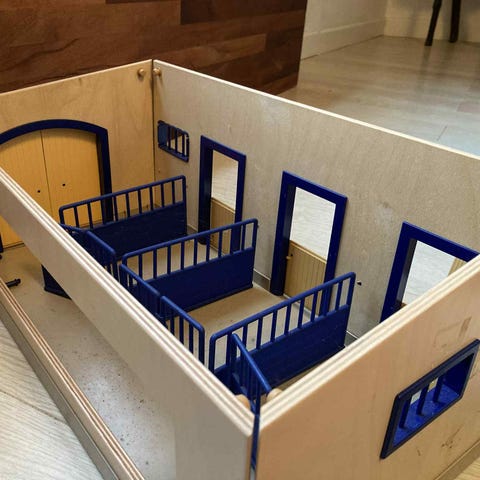 Hestestald til leg. Minder om Schleich. Medfølger tre kryber + mad