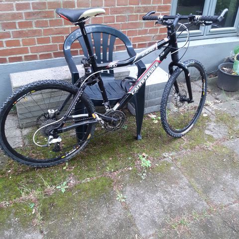 Cyklen er med Lefty forgaffel, bag Rockshox gaffel, Sram XO/NX geargruppe, helt nye Schvalbe tubeless dæk, ( Lefty forgaffel nyserviceret)