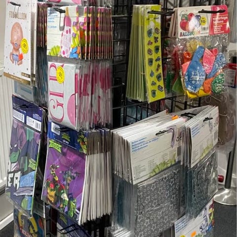 Forskellige børneartikler klistermærker, festpynt, accessories og krea.