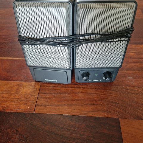 Creative højtalersæt. Stik har været klippet over, men er testet med de medfølgende samlemuffer