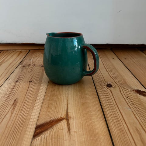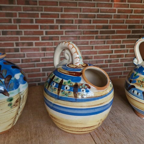 Sabbio kande fremstillet i keramik med en brun og beige farve. Kanden har et håndtag og låg, og den er velegnet til opbevaring og servering af væsker.