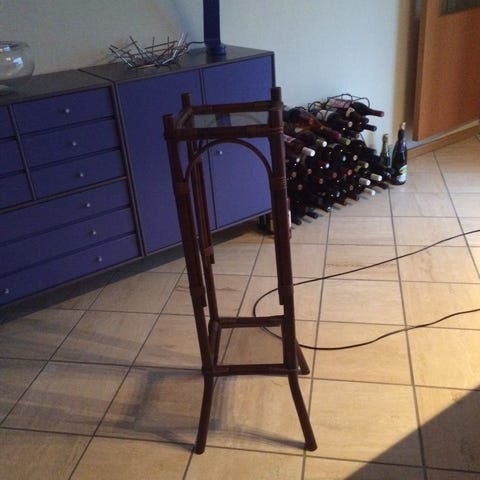 3 Blomster pedestaler med 2 hylder i mørk bambus.