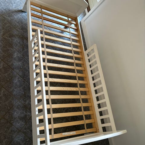 Fin og velholdt juniorseng. Der er lidt brugsspor hist og pist.