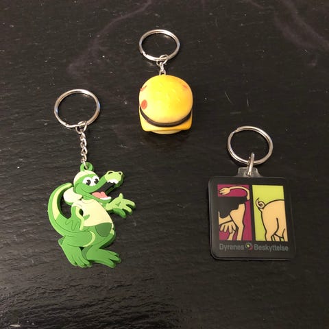 Sæt med forskellige nøgleringe og små samleobjekter i forskellige designs, materialer og farver. Indeholder flere unikke og varierede genstande egnet til samling eller dekoration.