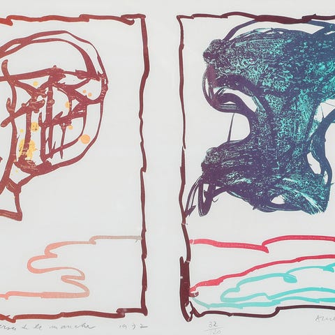 Litografi af Pierre Alechinsky. Tryksigneret. Måler 62 x 46 cm.Indrammet i træramme. Rammemål 51 x 68 cm.