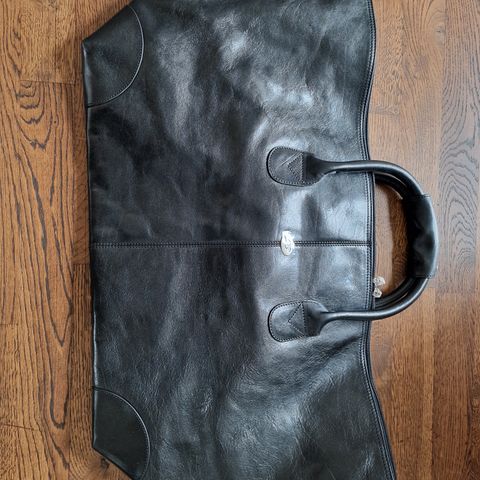 Tasken er helt ny og ubrugt. Den måler 54 x 30 x 20 cm og har et volumen på ca. 45 liter. Den er lavet af vandafvisende syntetisk læder.