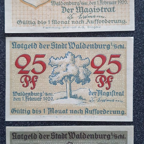 Sedlerne er i fin stand har ikke været foldet eller bukket dog har 25pf sedlen et lille hjørnebuk se billederne.