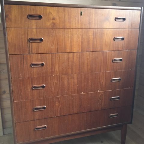 Teak kommode med 6 skuffer