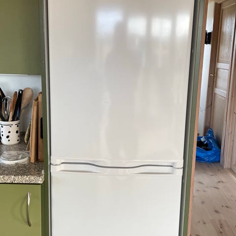 Beko køle-fryseskab i hvid farve. Skabet har separate rum til køling og frysning, med hylder og skuffer til opbevaring af madvarer. Velegnet til almindelig husholdningsbrug. AFHENTES I DAG ELLER I MORGEN FORMIDDAG.