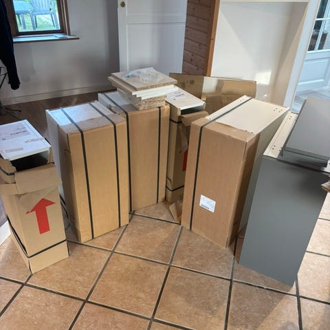 Flyttesalg: Helt nye og ubrugte køkkenelementer, plader, beslag mm.
