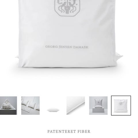 Duck Down Low og Duck Down Medium, Georg Jensen Damask puder fremstillet i hvid bomuld. Puderne har et broderet Georg Jensen-logo.