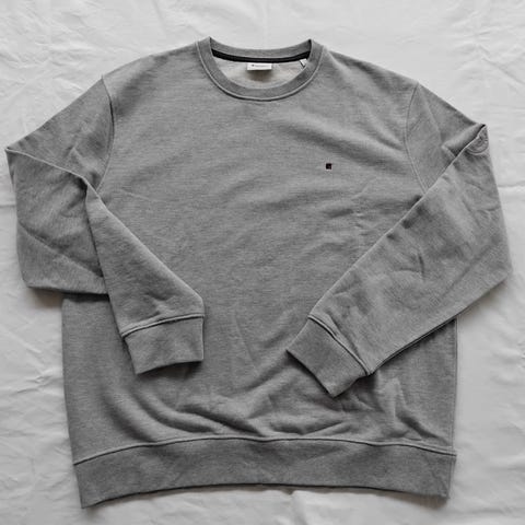 Rød herresweater med rund hals og strukturmønster. Fra REDGREEN; str. XL.