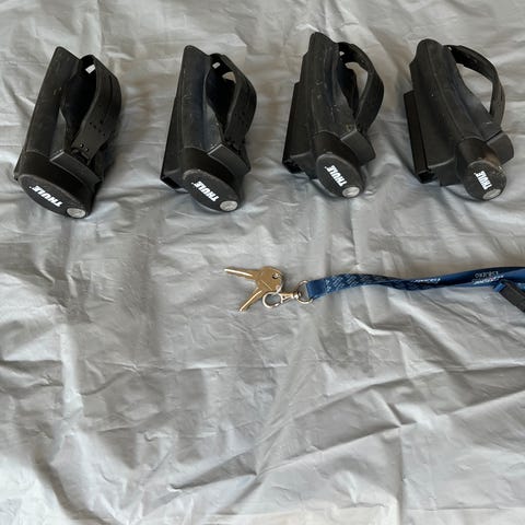 Sælges grundet bilskift. Fødderne passer til en almindelig langsgående tagræling og er promiller fra at være som nye uden synlige brugsspor.