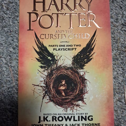 J.K. Rowling Harry Potter and the Cursed Child bog. Indeholder dele et og to af historien, baseret på en original ny historie af J.K. Rowling, John Tiffany og Jack Thorne. En teaterforestilling udgivet som bog.