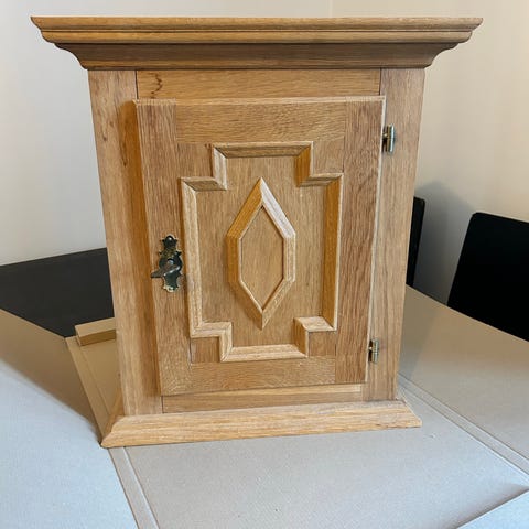 Reolen har plads til opbevaring af vinflasker eller andre flasker i 15 enkelte rum samt ekstra hylde og ophæng til vinglas. Designet som en tønde med rund bordplade på toppen.