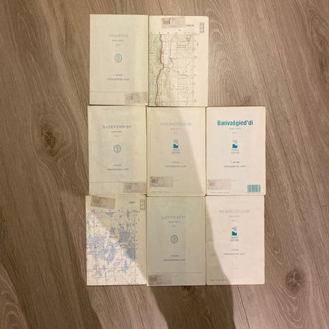 Hvert kort viser detaljerede topografiske oplysninger over det specifikke område.