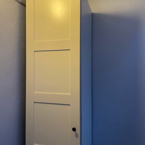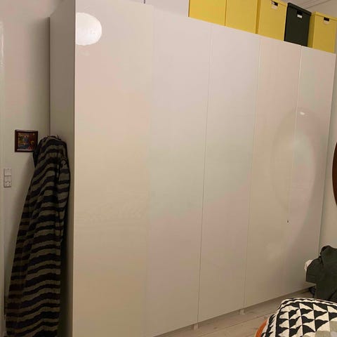 Bagbeklædning til IKEA Pax skab str. 236x100 cm. Den er antracitgrå på den ene side og træ/natur på den anden.
