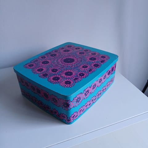 IKEA Mette Rehne Kunstdåse i metal. Opbevaringsdåse med dekorativt motiv. Kan bruges til opbevaring af diverse småting i køkken eller andre rum.
