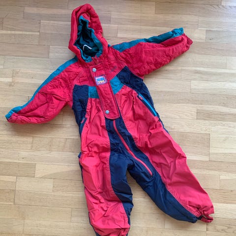 Rigtig flot og velholdt flyverdragt fra Reima. Der er ingen huller i den, intakte gummiestropper til under støvlerne. Varm, vandtæt og godt ventilerende.
