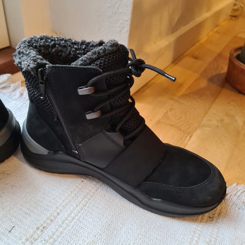 ECCO Vinterstøvler i størrelse 38, farve sort. Støvlerne er designet til vinterbrug med solid sål og snørelukning ved skaftet for justerbar pasform. Brugt 1 gang, ny pris 1400 kr.