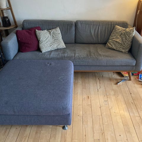 Sofa med brugsspor inklusiv puf.