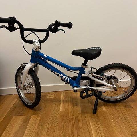 Vores pige kan ikke passe den mere. Vi købte den ny i august 2022 hos en cykelhandler, det er en børnecykel fra Woom 24 tommer. Den kører fint og har lige fået service. Faktura haves, så forsikringen dækker. Hentes på Islands Brygge.