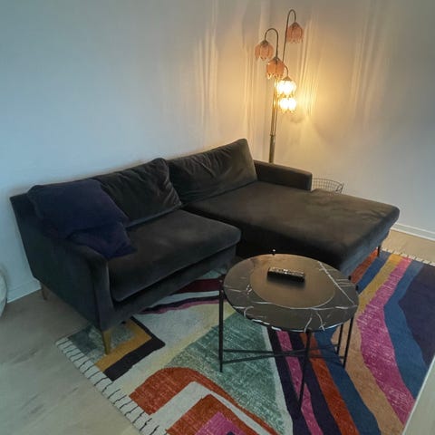 Skøn Astha sort velour chaiselong sofa fra Sofacompany