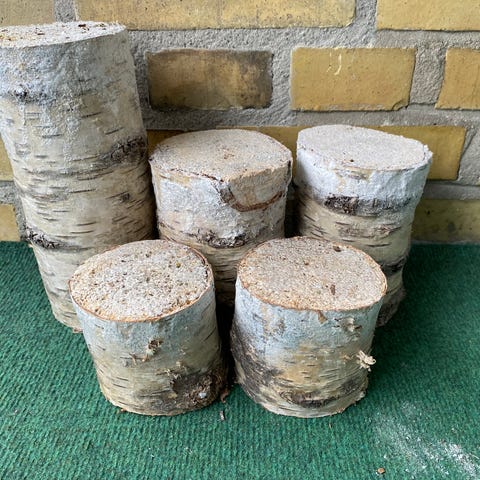 Skiver og stykker af grene, hvor du kan bruge dem som decor i sig selv, som underlag eller centerpiece … eller hvordan du er kreativ