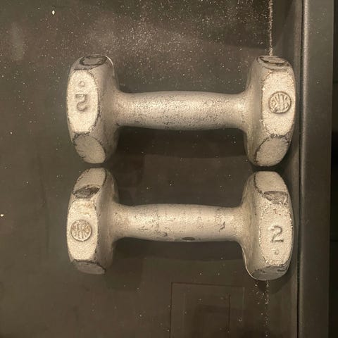 På hver håndvægt er der 2x1,1kg og 4x0,5kg