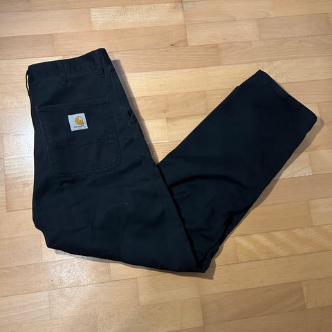 Carhartt Bukser i størrelse 32x32 til mænd, lavet af bomuld i beige farve. Bukserne har en robust konstruktion med lommer, herunder en baglomme med Carhartt-logo. Designet til daglig brug med fokus på komfort og holdbarhed.