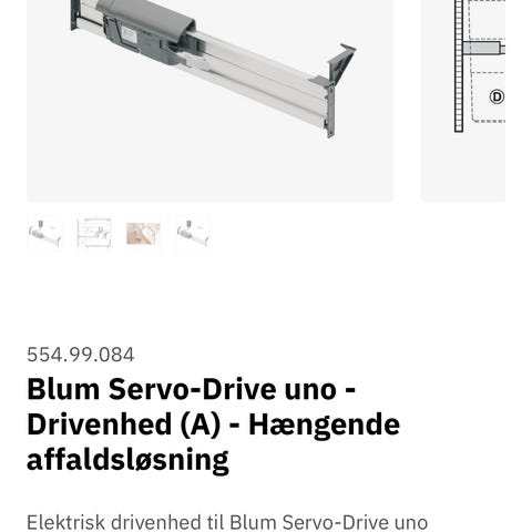 Blum SERVO-DRIVE flex er en elektrisk skuffeåbner designet til at give automatisk åbning af låge. Produktet inkluderer nødvendige komponenter til installation og anvendelse, og leveres i original emballage med manual.