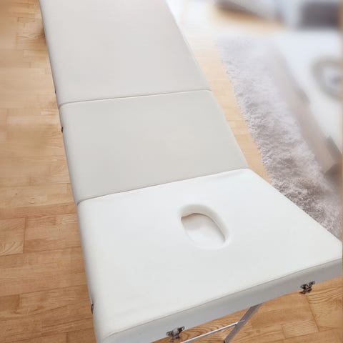 Sælger denne solide og komfortable behandlerbriks/massagebriks med sort polstring. Perfekt til klinik, massage, fysioterapi, kosmetolog, tatovering eller hobbybrug derhjemme.