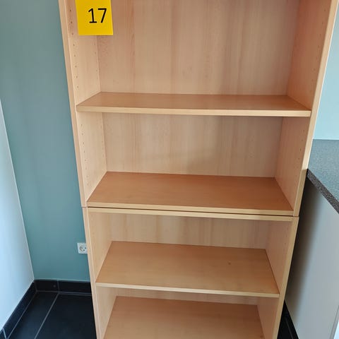 Velholdt reol i bøg sælges. 2 sektioner med hver 6 hylder (hylderne vises desværre ikke på billedet men medfølger). Solidt og står godt fast.