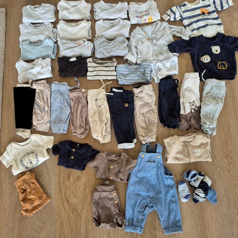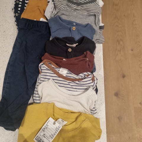 En body fra Hust and Claire, en fra Wheat, 2 fra Name it og 1 buks, en fra Magasin du nord, og en buks fra minymo. Alt i meget flot stand og vasket i neutral.