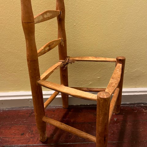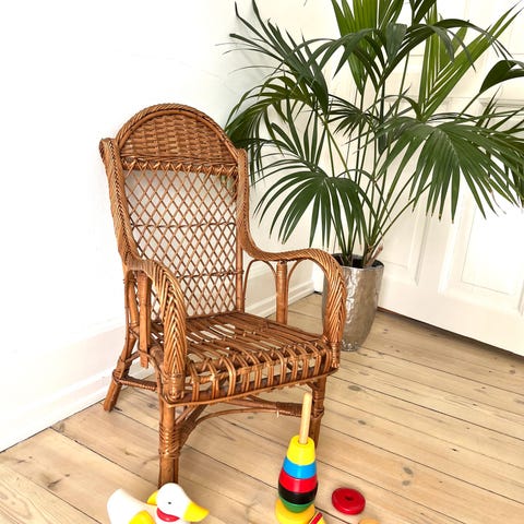 Stolen har den helt rigtige vintage‑charme og passer perfekt til børneværelset, legehjørnet eller som dekorativt interiør i hjemmet.