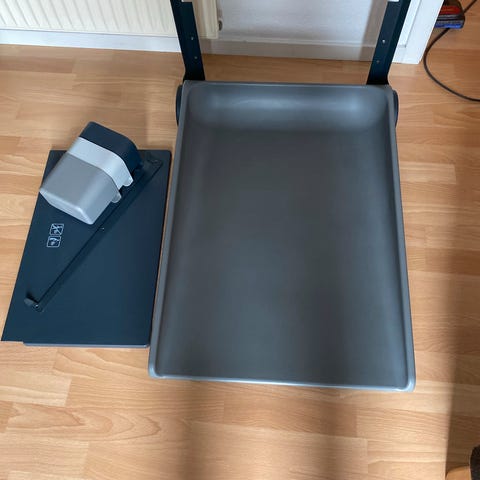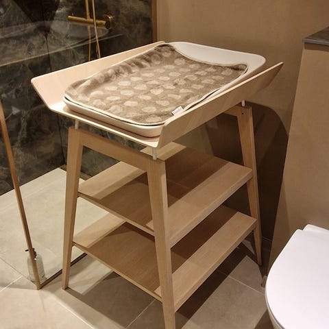praktisk Leander puslebord i hvid, opbevaringsplads og leander puslepude. Designet til børn og lavet i holdbare materialer.