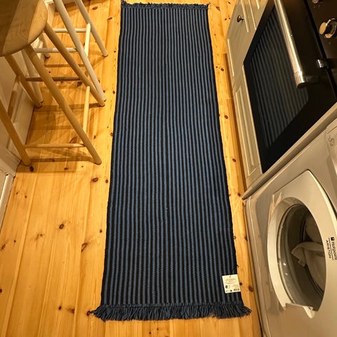 Hay Raw Rug i midnatsblå. Kun frynser i den ene ende. Fra røg- og dyrefrit hjem.