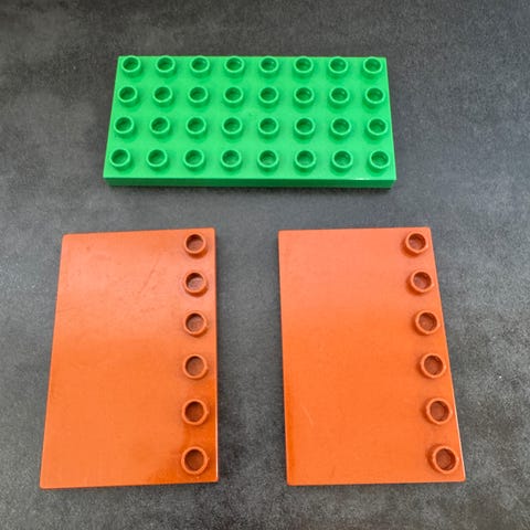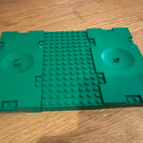 LEGO byggeplader i grøn farve. Sættet indeholder 3 stk. byggeplader med målene cirka 38x38cm hver. Pladerne er lavet af plast og er kompatible med LEGO klodser til opbygning og leg.