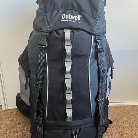 Sælger min Outwell rygsæk med en kapacitet på 55x10 liter i sort og grøn farve. Rygsækken har justerbare remme hoftebælte,side,front lommer,lommer på toppen,regnslag og polstrede skulderstropper for komfort ved bæring. Den er egnet til udendørs aktiviteter og rejser, hvor stor opbevaringsplads er nødvendig. Måler H75 B35 D25 CM