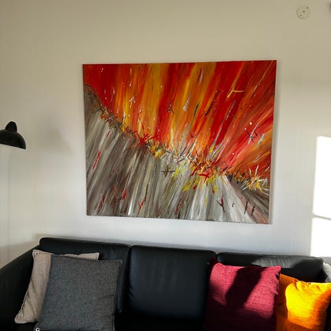 Maleriet passer perfekt som vægkunst i stue, soveværelse eller over sofaen og fungerer godt i lyse, moderne hjem. Et originalt abstrakt maleri, der giver personlighed og varme til indretningen.