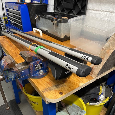 Thule tagbøjler til bil i aluminium med sort plast til flash side rails.