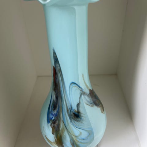Flot vase af glaskunstneren Essie Zareh - højde 31 cm . - vægt 1105 g. - anhæftning ( knæk ) under bund- PRIS - kun - 400 kroner afh. i Herning + evt . forsendelse // levering ??