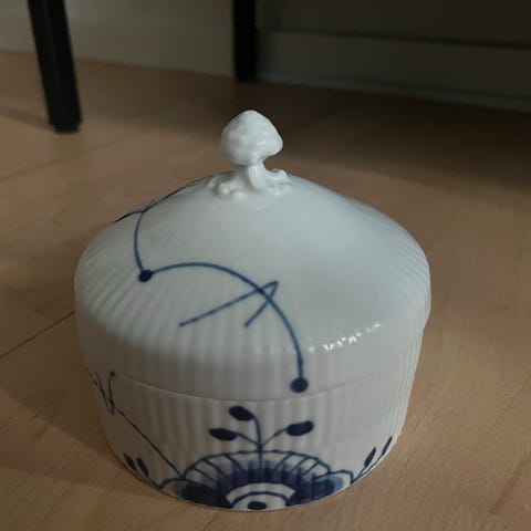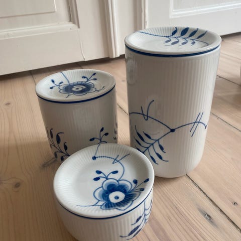 Royal Copenhagen stel til opbevaring i porcelæn med sort dekor