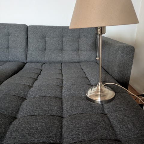 Fin lampe med orange detaljer.